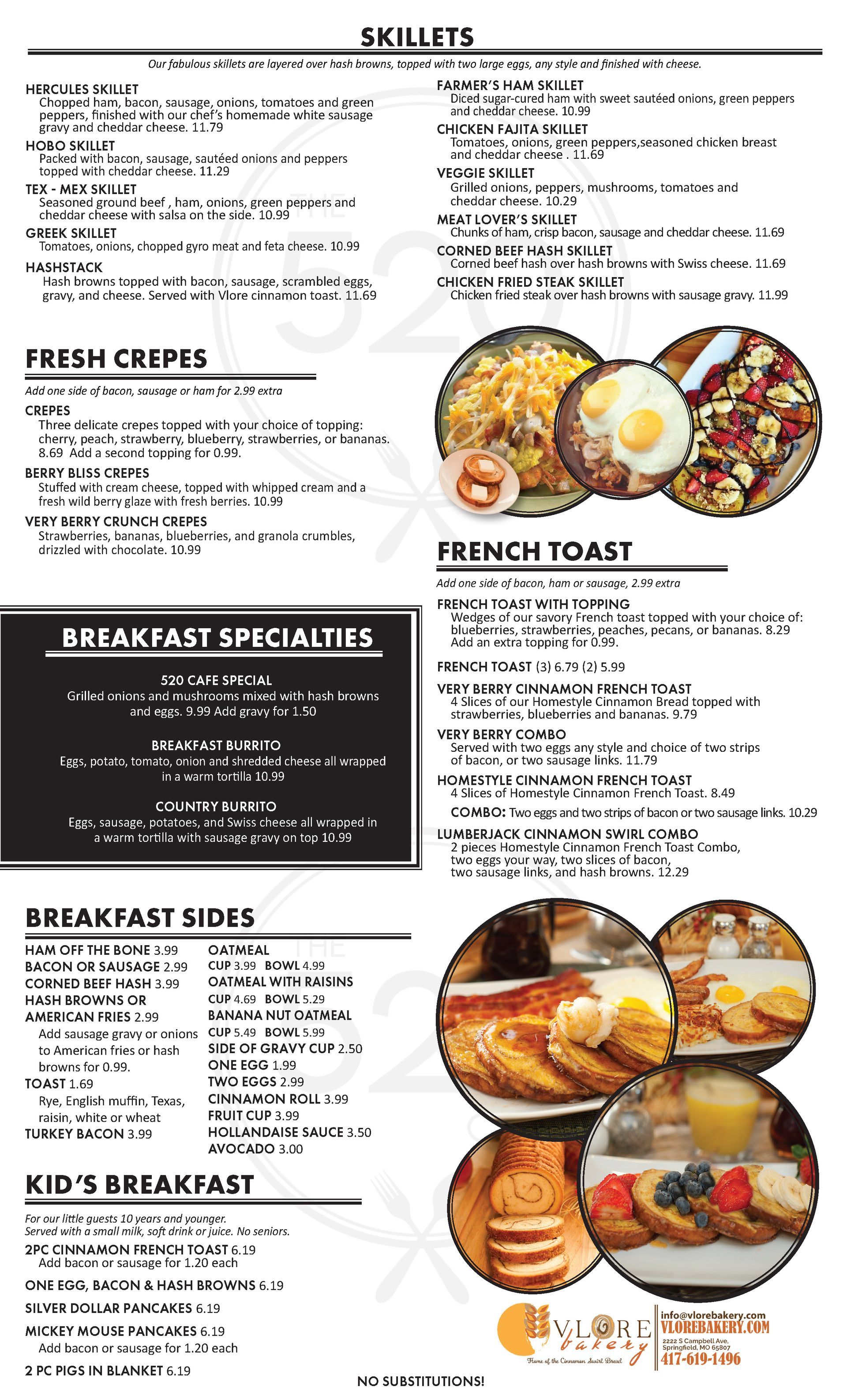The 520 Cafe Menu